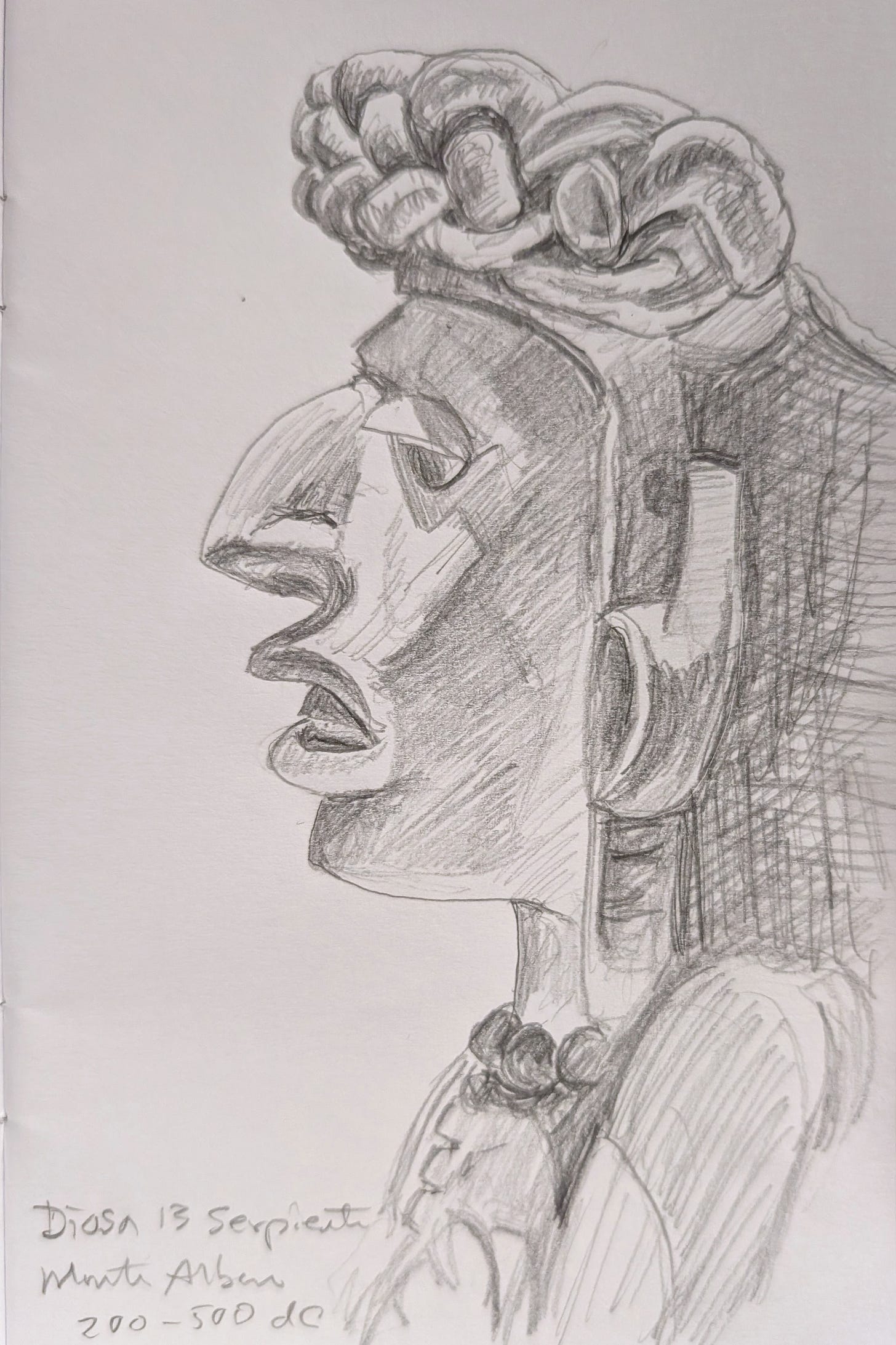 My sketch of a portrait urn from Monte Alban, 200-500 A.D.