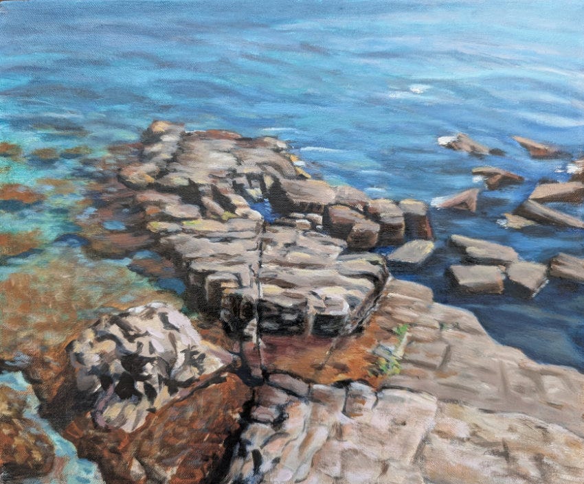 And please do your own creative work, as much as you can. If we are aware of the plight of others, and do what we can to help, it’s an act of resistance to also continue to make things, to allow the creative life force to flow through us. I’ve had a busy week full of dental and eye appointments, a dead car battery, and days that seemed to dissolve without much to show for them. But I’ve drawn a little bit, and reworked the recent oil painting so that I’m more satisfied with it.